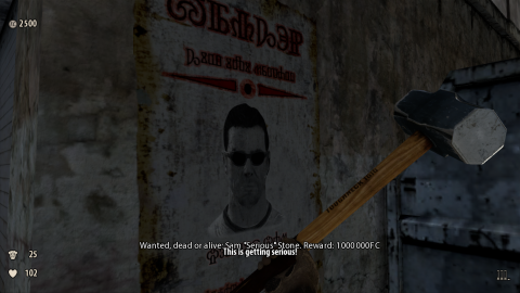That doesn’t even get into how disorienting the camera can be during these animations, Sam swinging wildly around to the point you can barely see anything because they mapped the camera movement to his head movement instead of just letting it stay in the field of action. The sledgehammer, the chainsaw and knife replacement, is horrible for this reason, requiring either a long swing that keeps you looking ahead, or a shorter swing that forces you to look off to the side and away from enemies during the animation. It’s a string of minor annoyances that start to add up, hitting the peak with more weapons requiring reloads, including the tommy gun’s replacement. You get forty shots with the new assault rifle, which you go through quickly, then you go through a very long reload animation. You can cancel out of it by starting a sprint (one of the few welcome additions), but because most mobs make you run backwards, activating a sprint by moving forward will not be high on your priority list and the end result is that mobs will start ganging up on you much quicker then they ever would in previous games.