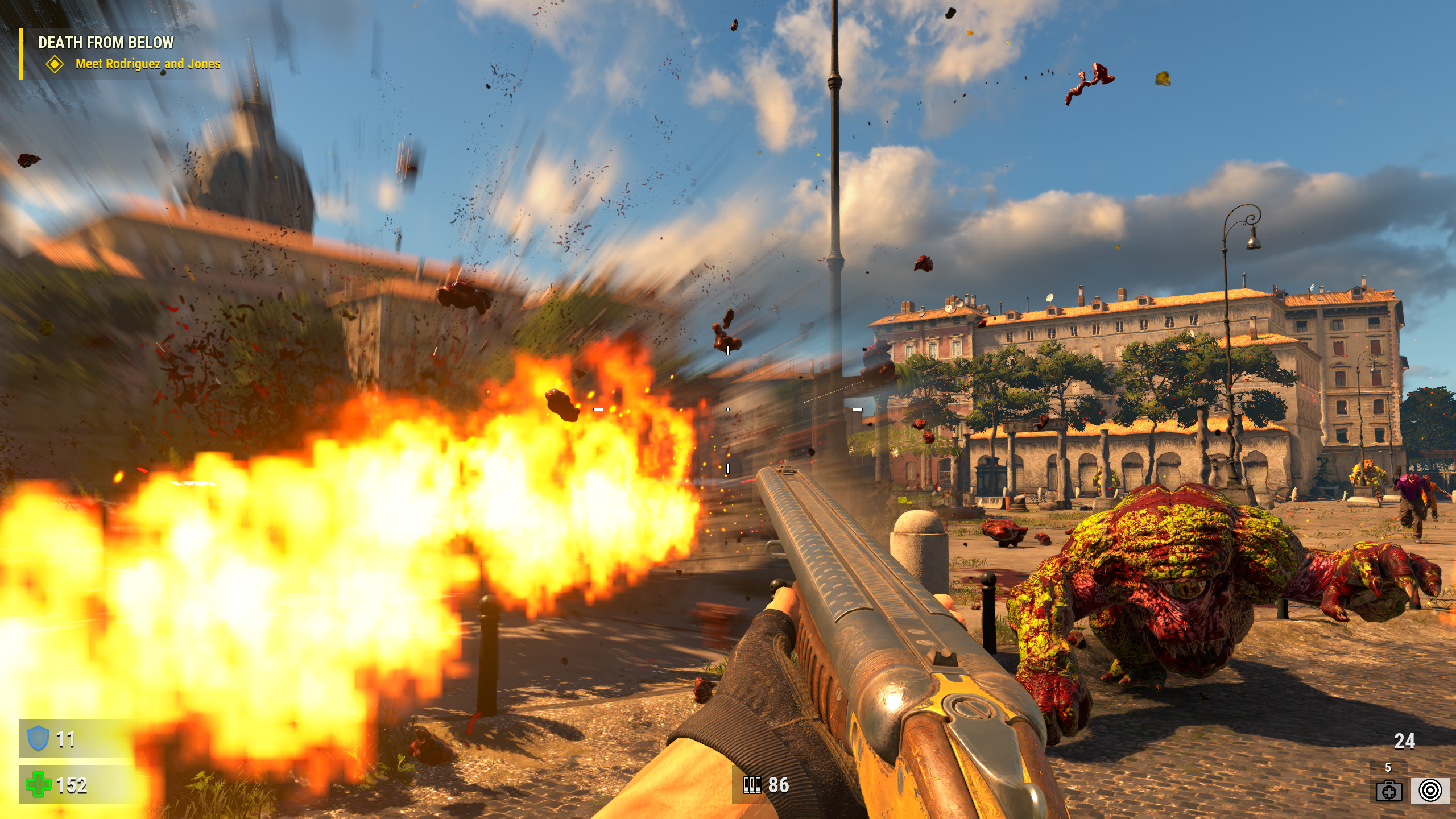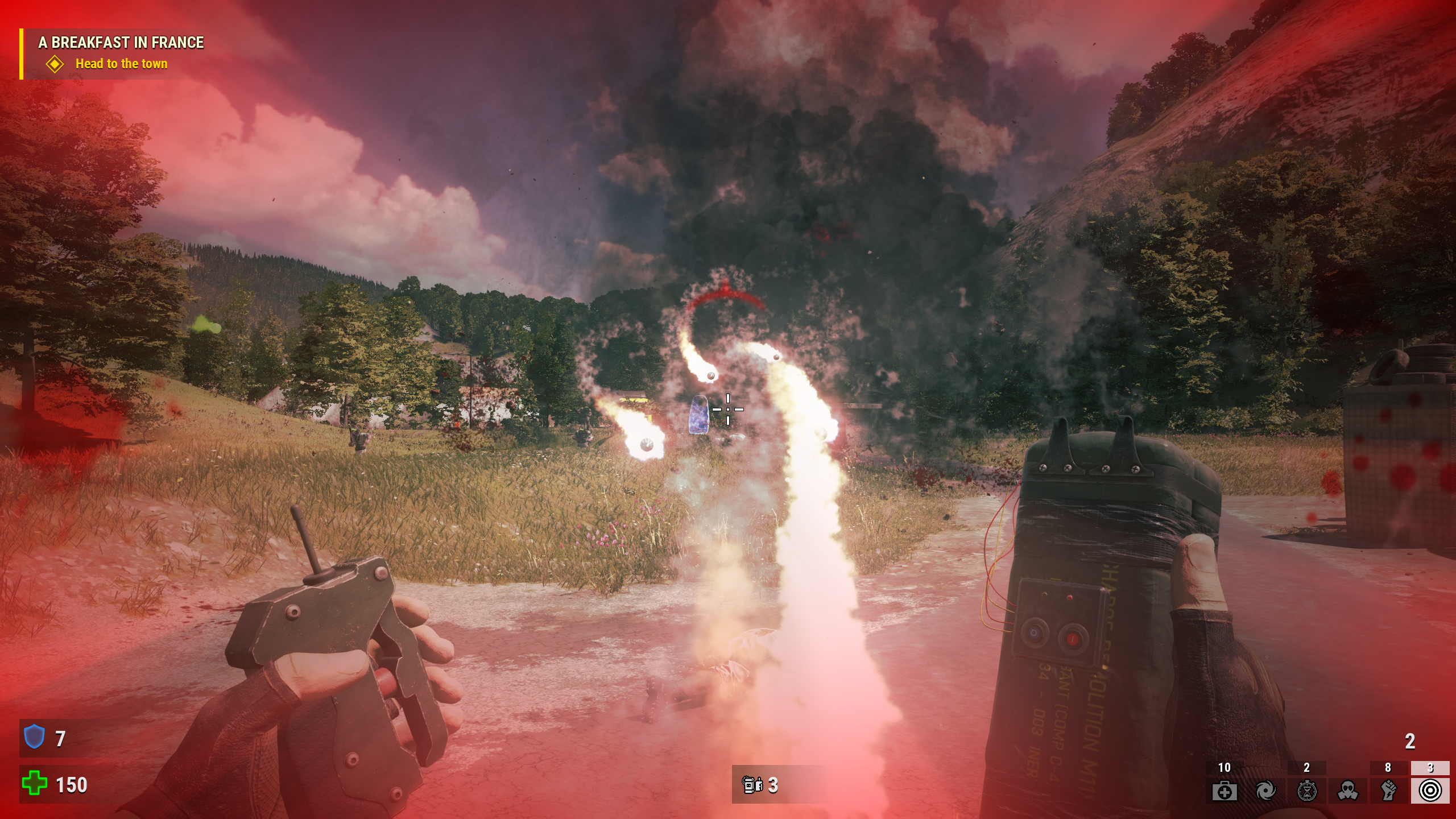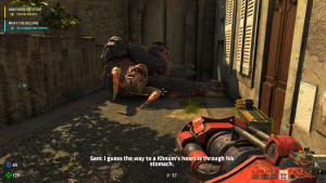 It’s difficult to describe how well the game manages to balance the goofiness of 2, the manly grimness of 3, and the new elements from the script writers, but the effect is clear when the ending credits have some of the cast shoot the shit, drink some beers over a fire, and mourn those who didn’t make it and it might actually make you feel things. Special mention must be made to John J. Dick, who gets to really show his acting chops and give one of the most one note characters in gaming some emotional layers nestled naturally in his normal himbo lines (“Gunfire isn’t a problem, it’s a solution!”). The whole cast does great work, including the hammy accents for the Italian and French characters, but Dick really steals the show, as he should. He’s even properly polite after helping a lesbian sniper couple in a French valley.