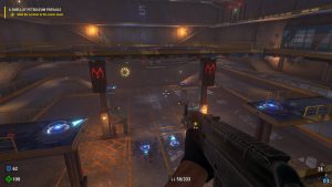 The “Burner” Raygun is also monstrous, switching out energy shots and lightning bolt style ray alt-fire for the latter but stronger and able to make enemies killed with it explode. That one is saved for the forth of the five levels, but you will get a LOT of use out of it. There’s even a new hoverboard gadget that lets you ride around in first person on a hover craft with a laser turret. It’s a load of fun that changes up the feel of fire fights by speeding you up massively.