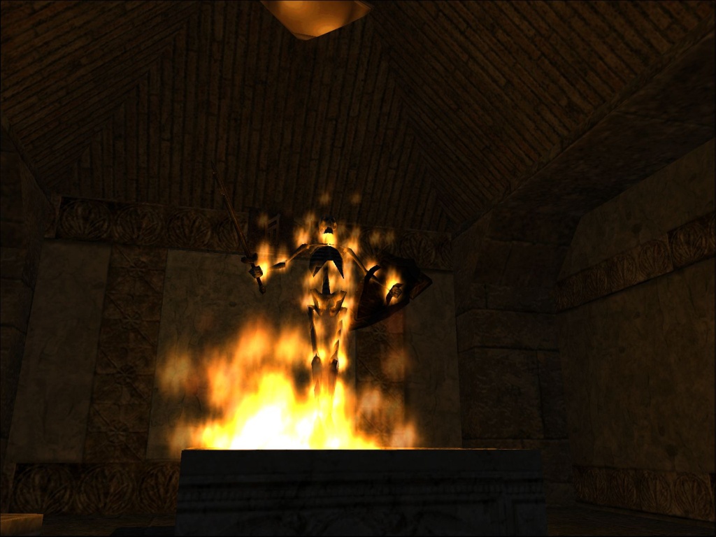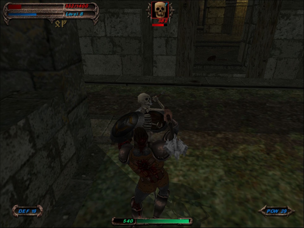 Severance was praised by the press upon its release for the quality of its lighting. The constant play on light and dark, and the use of torchlights are indeed still impressive. The environments are gigantic, always giving an impression of despair and loss. Starting in classic medieval fantasy environments, the levels becomes more and more Arabic-inspired as you progress toward the Temple of Ianna. The game’s production was extremely long and the textures and animations are a constant reminder of its toll. Characters are blocky, and their animations are crude at best. Codemasters’ re-branded “Severance” title highlights the most visual feature of the game. Severed arms fly, characters are splattered in blood, and decapitated goblins keep walking like headless chickens.