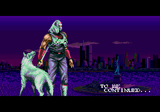 The boss battles are a little unimpressive compared to the arcade version (no battles with trains, unfortunately), but they’re still well designed. The graphics are comparable despite the limited palette of the Genesis, although the magic attacks are missing the cool close-ups. The soundtrack is also new, and more reminiscent of The Revenge of Shinobi.