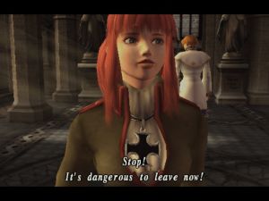 That all being said, it’s confession time: when I stated earlier that Covenant‘s “openness” would be the first thing you’d notice about it, I lied. That distinction belongs to the much-improved graphics. While the game doesn’t quite reach the topmost tier of PS2 visuals, it’s still impressive to look at, especially considering the rather spartan foundation it’s been built up from. The mostly-lifeless pre-rendered backdrops have finally been ditched in favor of real-time environments, while character and enemy models, particularly in terms of facial expressions, have been drastically spruced up. Even with the fresh coat of paint animations are still silky smooth, and the lauded CG cutscenes are even more impressive to behold than they were last time.