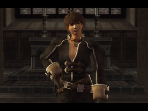 Of course, with great popularity comes great heaps of swag and other promotions: another 2-disc soundtrack and a complement of guides and artbooks are no-brainers, but how about, say, a cell phone fan club (featuring ringtones, wallpapers and the like), phone cards, calendars, tote bags, alarm clocks, music boxes, a TGS promo DVD, and pre-made cosplay outfits? While some Japanese copies of Shadow Hearts II were again afflicted with a save bug (the transition to Disc 2 could corrupt your file; victims could mail their card in to have the data fixed), the country was also the only one to receive a “Limited DX Pack”, which threw in a cell phone strap, choker and pouch, media DVD, and a pair of Judgment Ring drink coasters(!) alongside the game for a few thousand yen extra.
