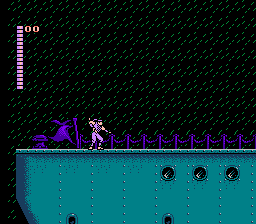 This will probably happen a lot, because Shadow of the Ninja is a pretty tough game. The original game was no walk in the park either, though not quite to the heights of something legendary like Ninja Gaiden. The original game expected you to make it through the whole game with only a few continues. This remake gives you only one life but unlimited continues, restarting you at the beginning of each section. It’s much more forgiving, so you can retry any stage pretty quickly, especially boss battles, but it also means that each individual section is more challenging than its corresponding level in the original game. Repeatedly fail a level, and the game will show some mercy by tossing an extra health item your way.