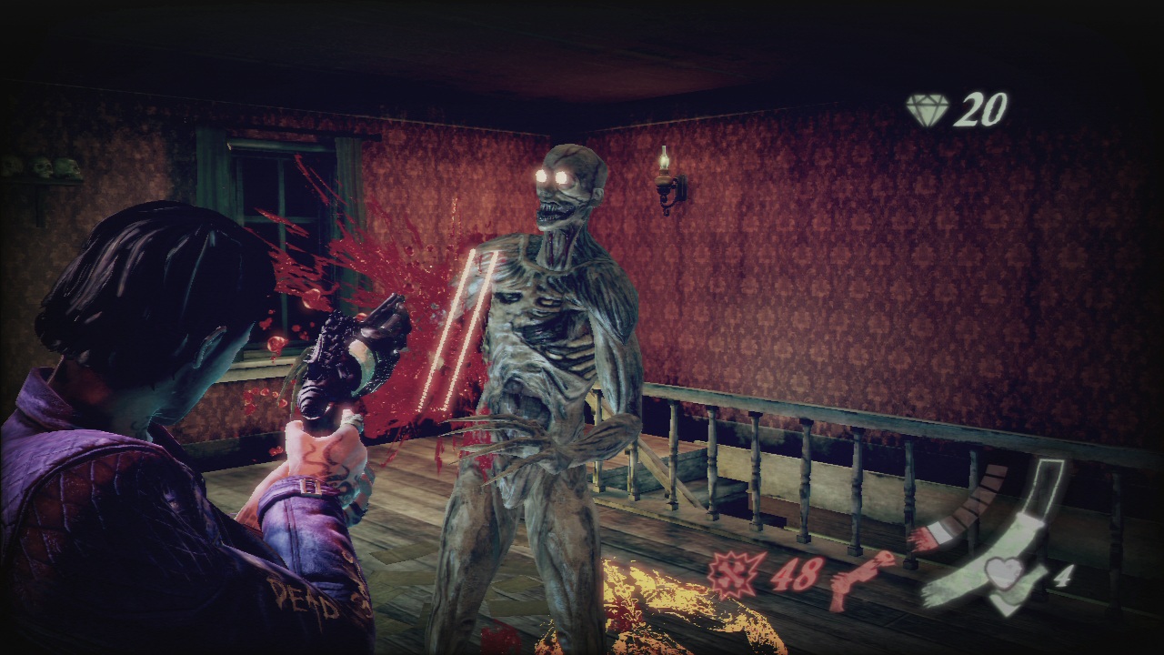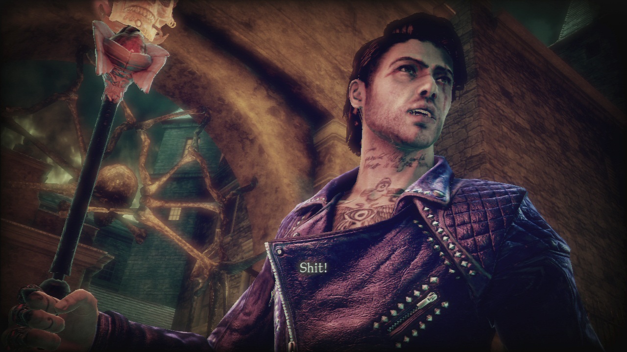 Shadows of the Damned had the rotten luck of being the first title developed by Grasshopper under Unreal Engine 3 and it shows. Getting the good out of the way, Garcia and Johnson have very detailed models and texture work. This is in contrast to nearly every other model, which lack proper flair and contain numerous imperfections. The game also has a rather impressive use of lighting. Depending on which weapon you’re using, Johnson (as either a torch or as whatever gun you have out) will give off a colored source of lighting, unique from any other source in the environment, showing an artistic effort to not make the colors that Johnson takes on just visual cues. In spite of Garcia in particular having good texture work, very few of the other textures in the game seem polished, giving off an unfinished feel to them, with only a handful looking like they belonged on a current gen console. This is made even worse by the texture pop-in, somewhat of a common occurrence in Unreal Engine 3 titles. While the game runs at 30fps, in what can be assumed to be a choice from the developers to keep in line with most third person shooters, the game often has framedrops, and can downright stop in it’s tracks when you reach a checkpoint. Loading screens between each area can last longer than ten seconds, and are at times, prone to getting stuck and endlessly loading. All of these issues are magnified on the PS3, which is known to have issues with UE3. Something unique to the PS3 version is an odd muffling of the voice acting and music, an issue that is absent on the 360 version.