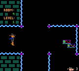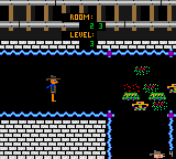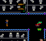 In 2001, Telegames resurrected Shamus for a port to the Game Boy Color. This adds in some story scenes that explain the origin and rivalry between Shamus and Shadow. These actually feature some tiny, grainy video, though due to its choppy framerate, calling it “full motion” is somewhat overselling it. Each level is now themed – the first is a laboratory, the second is a movie studio, the third is a subway and the fourth is a casino – each introduced with a flyby of the area entrance.