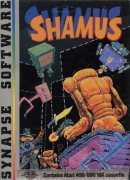 Synapse Software was only alive for a few years in the early-to-mid 1980s, but during their brief existence, they developed a reputation for publishing excellent software, primarily for Atari 8-bit computers. One of their hallmark games was Shamus, developed by Cathryn Mataga. While the title suggests something to do with investigative work (a “shamus” is slang for a detective), it’s actually a little misleading, considering it stars a knife-flinging robot in a hat and trench coat, infiltrating the lab of his evil counterpart, Shadow. The title screen features a rendition of the tune “Funeral March of a Marionette”, more widely known as the song that accompanied Alfred Hitchcock movies.