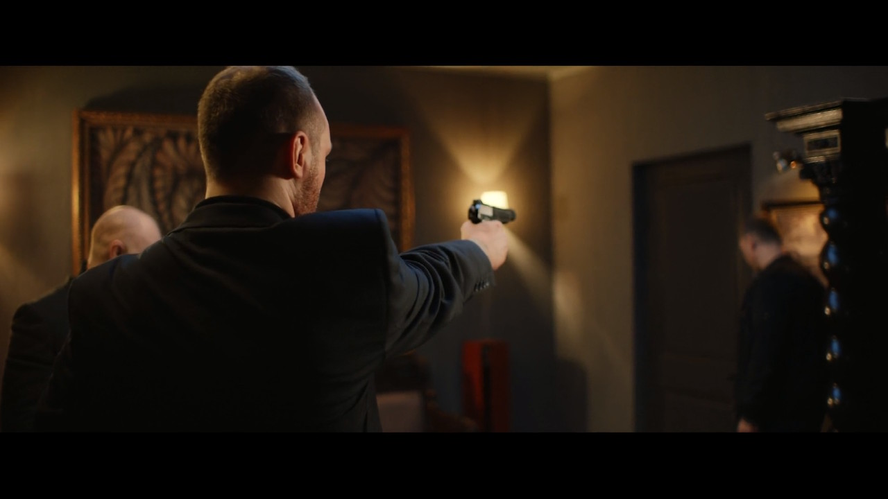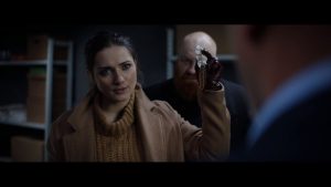 On that subject, the story presented in She Sees Red is a fairly straightforward gritty crime thriller, but one that’s presented quite well. There’s a good balance between action, mystery, tension, and even a small bit of off-beat humor that keeps things compelling. Scenes flow intuitively between the hooded man’s actions and the detective’s investigation, using clever camera angles and editing to create a nice sense of interplay. There’s a strong use of moody, colored lighting that blurs the lines between presenting events within the literal context of a nightclub, and presenting them emotionally by informing the tone and tension of any given scene in a more theatrical fashion.