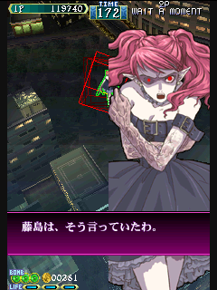 If the player can stay alive long enough, the standard attack gets stronger with higher scores, at a maximum of Level 4. This is exclusive to the first game. Each stage in the first Shikigami game has two sections. After the first are two mini-bosses, each regarded as a section (2-2, 2-3) and at the end is the main boss. Before the beginning of each stage and during the boss fight, the characters either have a monologue or a dialogue, depending if they're alone or not. Everyone's dialogue is different. This game has no voice acting during the story segments, but there are various yells and shouts used in-game.