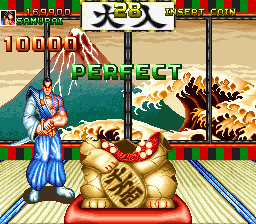 When Kaneko released Shogun Warriors outside of Japan, it was given an English dub. SNK did this with some characters in Art of Fighting 2, but otherwise this was very uncommon at the time. The effort is appreciated, but the result is more amusing than coherent. In the US release, Sumo excruciatingly exclaims “I’m strong!” in an unidentifiable accent. The most hilarious however is Geisya. During one of her special moves it sounds like she’s screaming “What a fucker!” – in US arcades in 1992! If she is actually saying “sucker,” the low sampling quality of the game makes it impossible to hear it that way. Another stand out is Kabuki shouting “Wyld Stallyns!” as he does his head banging special move.