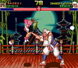 Some of these characters are actually pretty cool for a 2D fighter released in 1992, and Kaneko deserves some credit for putting out a game so similar to SNK’s Samurai Shodown a solid year before Samurai Shodown even existed. While the game is nowhere near as good as SNK’s once popular series, it’s worth a try as an example of a competent, but unbalanced, early take on a Street Fighter II style fighting game. The animation is a little choppy but in general it looks nice. There’s also a pretty good soundtrack to go along with the action, though unfortunately some songs are used for more than one character, keeping each background and character from having as much personality as we’d see in the best fighting games from Capcom and SNK.