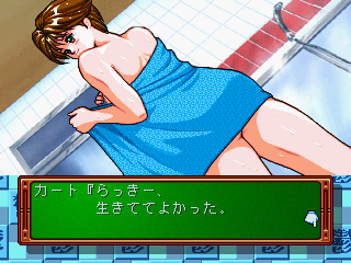 At certain points you can pick from three steamy windows, one of which has bathing girls. The dialogue says “What luck! It’s great to be alive!” (I also entered my name in the wrong spot because I wasn’t paying attention, so it has my first name instead of my last.)