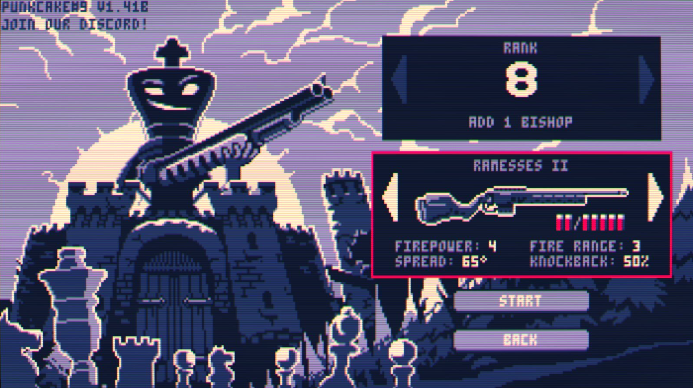 There are few competitive activities which would not be vastly improved – or at the very least, made significantly more engaging – by giving one of the competitors a shotgun. Arm-wrestling, charades, Magic: The Gathering; none of these have yet reached their full entertainment potential. Nobody understands this philosophy quite like the indie team PUNKCAKE Délicieux, a trio of two French game developers and one Spanish composer, who have been making a name for themselves on Steam and itch.io with unique concepts such as hexadecimal Sudoku, a combine harvester battle-racing game, and their first – and most successful – title; Shotgun King: The Final Checkmate.
