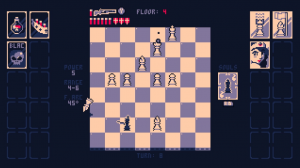 To counter these abilities, the enemy will also be receiving a variety of interesting power-ups, including but not limited to; making queens completely invincible but significantly lowering their speed, giving rooks the ability to protect pieces near them from taking more than one damage per attack, giving bishops the ability to move in all eight directions – and also to fly – or turning one of the pawns into the king’s secret heir who will take his place if he dies. Which brings me onto one of the toughest decisions in the game; just like in real chess, the match is over as soon as either king is dead, so if you’re lacking survivability but packing some serious firepower, a completely valid strategy is to make a beeline straight for the enemy king and blast them into pieces as quickly as possible, ending the floor immediately. This still works on the final boss, a giant 2×2 square version of the White king with increased health.