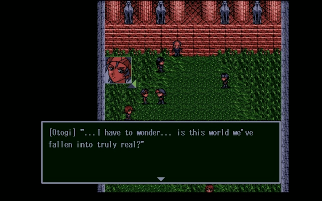 It resembles other RPGs as it involves exploration and random enemy encounters, but its focus is curiously not on combat itself but rather on puzzle-solving in order to save party members from punishment. Ayuto, throughout the course of the game, can learn action commands such as “push”, “crawl” and “look above”, with these actions being crucial to save his teammates. If he fails to save a party member, not only does that person die and leave the party forever but he or she will come back to life in a creepy mummified form to attack the party during the latter stages of the game and, according to who you saved, different combinations of survivors result in different dialogue in the epilogue.