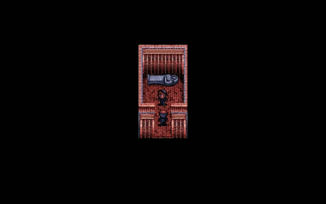 As for the main influences, Yaotani cites the aforementioned Corpse Party as a direct motivation to make Shuujin e no Pert-em-Hru, since it exceeded the boundaries of “what commercial games could not do” at the time, especially the depictions of splatter gore. He also drew inspiration from Indiana Jones, Sherlock Holmes, Father Brown, and the works of Junji Ito for the adventure, mystery-solving, and horror elements of the game. Judging from the rare interviews available, Yaotani considers working around the limitations of game creation as an enjoyment, despite some challenges like RPG Maker Dante 98 II only supporting 16 colors, thus forcing Yaotani to set Shuujin e no Pert-em-Hru inside a dark pyramid, so that the color palette could be narrowed.