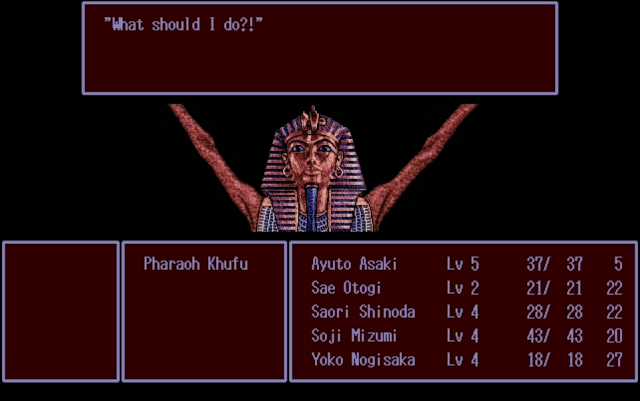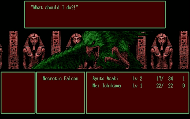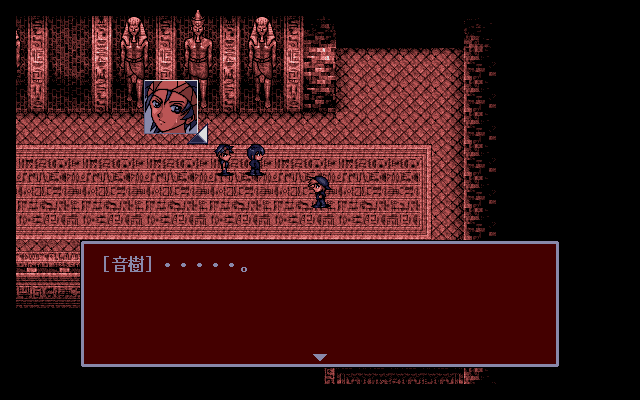 Imagine being an 18 years old Japanese guy on a fun and relaxing group-vacationto Egypt with your friends. You studied and worked hard the whole year (ganbatte ne!) so your parents decided to award you with a flight ticket to the Pharaohs’ Land. But as you reach the Giza pyramid complex your exotic vacation very quickly turns into a nightmare when Professor Tsuchida, a leading Egyptologist, literally recruits you and your Japanese teammates as you were chilling on the steps of the notorious Great Pyramid, in order to go on an unauthorized expedition into the unknown lower levels of the complex, after discovering a secret passage together with his assistant Kouji Kuroe. That’s the premise of Shuujin e no Pert-em-Hru (“Peret em Heru: For the Prisoners”), a freeware RPG for the PC98 created using RPG Maker Dante 98 II, much like Corpse Party.