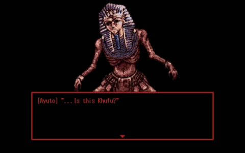 This interesting and creepy story was fully developed inside the RPG Maker Dante 98 II engine by creator Makoto Yaotani (then a 21 years old young man under the alias “Makoto Serise”). As some Egypt enthusiasts may have already guessed, “Pert-em-Hru” refers to the Egyptian Book of the Dead. While Yaotani was responsible for most of the development, Kei Mizuho helped in composing the soundtrack for the game, which took a year and a half to complete. It was published independently and released on May 31st, 1998.