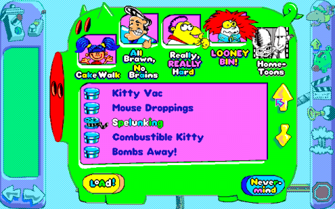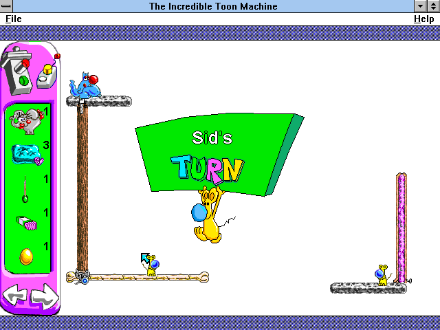 After the success of the original game, one would assume that its creators would go on to make a sequel, doing more of what the original did in typical sequel fashion. While that certainly came to pass, there would be one peculiar curveball on the way there. While Sid & Al’s Incredible Toons carries the same basic gameplay as its predecessor, its whole style goes another direction entirely. It’s a little less Rube Goldberg, and a little more Tex Avery and John Kricfalusi. The result, while certainly different, has its ups and downs.