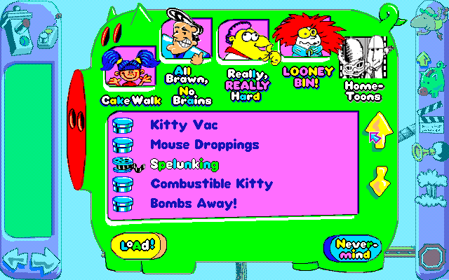 A year after the release of the original game, it would see a somewhat enhanced port for then-modern Windows 3.1 and Macintosh PCs. “Somewhat” is the key word, with the biggest feature being a set of new two player puzzles. Two players take turns placing pieces onto the field, and the first one to finish a specific goal first is the winner. A neat idea, although it’s unknown how much playtime you’d get out of it. There’s also a CD soundtrack and an FMV intro, which attempts to give the game a plot – after destroying their house and wreaking havoc, Sid & Al are sentenced by a judge to work in the “Toon Factory”. The puzzles also now come with narration from Sid & Al, voiced by none other than cartoon alumni Rob Paulsen and Jim Cummings themselves, with each narration ending with some goofy animation.