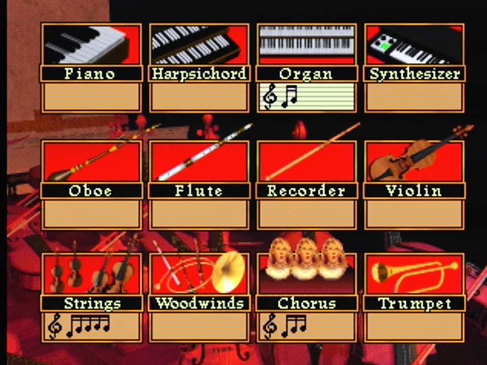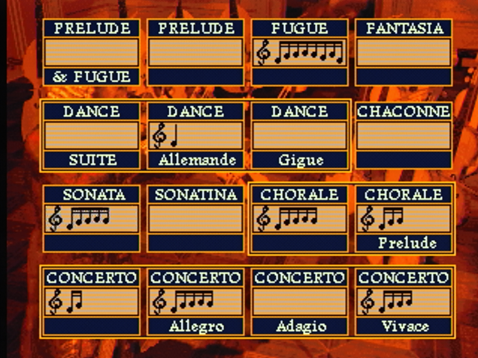 C.P.U. Bach – a sort of double-pun name, referencing both the computerized nature of the disc, as well as the name of one of his sons, C.P.E. Bach – hardly even bothers with full-motion video, let alone game mechanics. When you boot the disc up on your 3DO, after a brief introductory video, the machine immediately begins playing music in the style of Johann Sebastian Bach. But it is not just playing a tune from a pre-composed library; as the front of the case proudly proclaims, “Your 3DO can compose original music!” This is actually completely true, as C.P.U. Bach is the result of at least a year of work by MicroProse’s Sid Meier and Jeffrey L. Briggs, on a computer algorithm that can near-flawlessly create new compositions from scratch, designed to mimic the Baroque-era style of Bach. Everything from fugue to chorale, C.P.U. Bach can effectively generate an entire concert in just a few seconds, and then perform it in front of you. While there are occasional imperfections in the audio – the music is being played on what amounts to wavetable MIDI, so it obviously won’t sound as good as a real orchestra – one could easily set up a 3DO running C.P.U. Bach in a living room and tweak the settings for whatever entertainment one could possibly want.