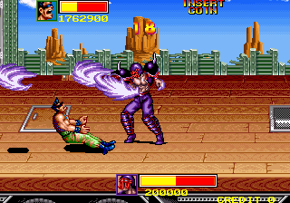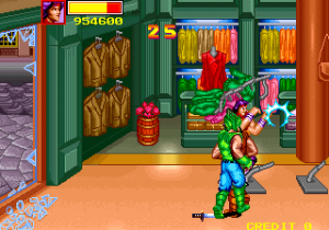 Outside of the bosses, but there really isn’t much else to be said about the otherwise straightforward Silent Dragon. Its graphics aren’t bad, though East couldn’t quite match Taito’s usual style, yet sprites do have slight scaling technology when heading towards the background in a neat touch. The music is also a far cry from Zuntata’s catchy and experimental tracks, though it’s fairly upbeat and samples are amusingly taken from Close (to the Edit) by the Art of Noise. Aside from its boss weirdness and blowing up enemies with old-timey dynamite, there’s not much reason to recommend Silent Dragon over most brawlers of the time. It’s not really bad, but something about its programming feels a bit chintzy and it teeters over the edge of mediocrity. It’s only after you’ve run out of truly juicy ones that this game is worth checking out, so if you already know Alien vs. Predator inside and out or can beat Turtles in Time without continuing, you may as well play Silent Dragon just to have one more scroller under your belt.