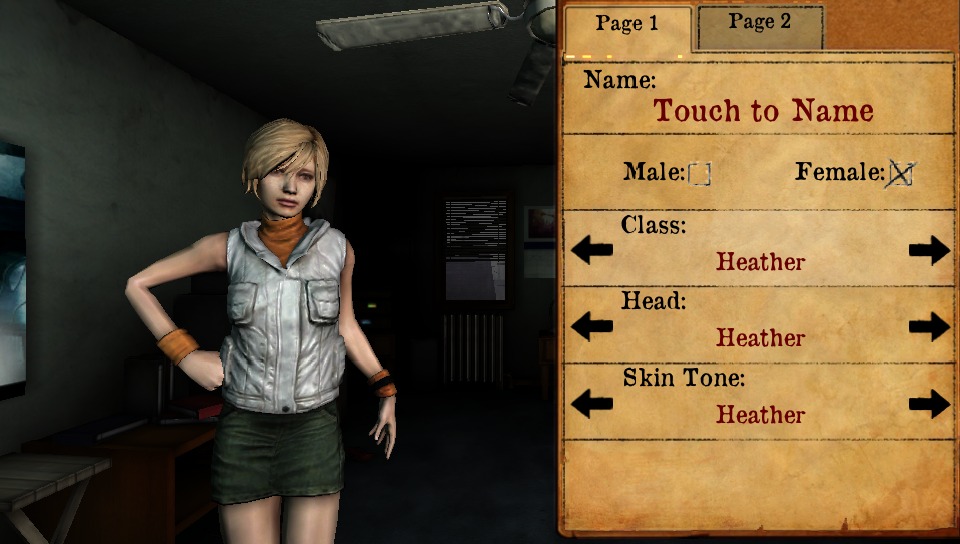 Starting a new game confronts you with a series first, a character creator. Without a set protagonist, the game invites you to insert yourself into Silent Hill and its lore. It’s not very complex, being limited to gender, skin color, hair, head, costume, and class. The classes, rather than the typical D&D-type roles of the genre, are modeled after Western high school stereotypes, like goths, jocks, and bookworms. However, just like the genre, the class you start with determines your stats, and a charm, chosen out of eight, provides a permanent boost to one stat, as well. Artifacts, items based on important trinkets from the series, are found throughout the dungeons, and offer stat boosts with some extra if they are equipped in the right inventory slot. An expansion pack provided some extra classes, including Heather and James, new artifacts, weapons, and other items, as well as offering the chance to reroll your character mid run.