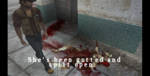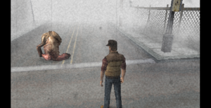 Silent Hill: Origins focuses more on melee combat than the other games. You have the ability to pick up any number of melee weapons that are lying around. This includes weapons like hammers, screwdrivers, and 2x4s to more absurd things like katanas and televisions. Travis also has no item limit so you will quickly collect a monstrous inventory of deadly trash. Weapons break after use, but there was never such a lack of resources that this encouraged any strategy. The glaring issue with the combat is that there’s nothing else added to it. There’s not even the dodge and block mechanics from the previous game. The enemies are more aggressive but Travis has no way to defend outside of a QTE that appears when you’re grabbed. Combat becomes an awkward dance routine where you’re trying to get behind the enemy to trap them in an endless stunlock combo. If you find yourself ambushed it’s difficult to recover, especially if there are multiple enemies.