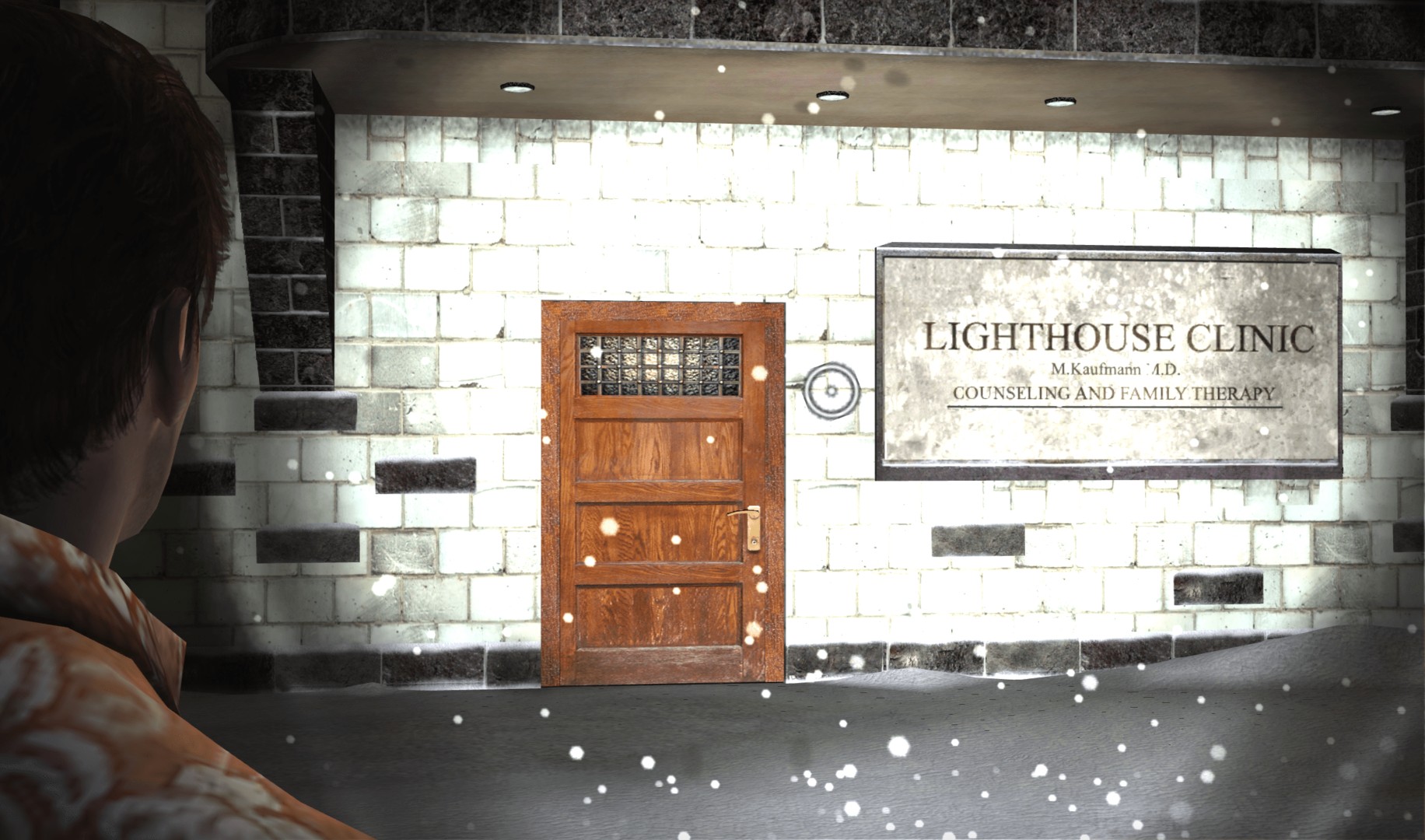 Shattered Memories begins in a therapist’s office and with a car crash. Being a reimagining of the first game, it starts Harry Mason wrecking his car one snowy night in Silent Hill and being separated from his daughter, Cheryl. At the office, an unseen Harry goes through therapy for the incident. The game cuts between these two scenes at important points, and as the search for Cheryl continues, so does the counseling. All the familiar characters from the PS1 game appear in remixed ways that are distinct from their original portrayals. For example, Cybil is still a police officer, but is constantly suspicious of Harry and his motives. Kaufmann is given a completely different role, working as the psychoanalyist in the counseling scenes. Dahlia is here in name only, being much younger and completely disconnected from any of the series’ cult. New characters, like prom queen Michelle and her boyfriend John, help round out the cast on the journey, given that there were only so many to pull from in the original.