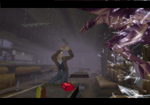 The character models and environments do look rather rough. Harry runs in a very unusual fashion, arms and legs akimbo, as though he has some kind of problem with his joints. However, this extends over to your enemies, as well. Most of them come across as oddly-shaped brown and red blobs that vaguely resemble dogs or birds or people. But there’s a certain grittiness to be found in the low resolution textures, the short draw distance, and the choppy frame rate. They give it a stylized, abstract look that gets lost in later installments due to the improvements in technology.