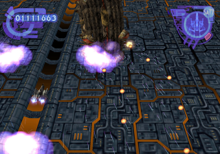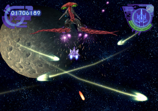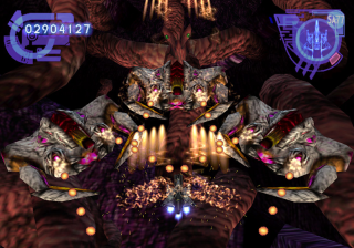 The earliest example of this idea, if not the first, is UPL’s Omega Fighter, a vertical shoot-em-up for arcades, from 1989. It featured several unique gameplay ideas, including score bonuses for killing enemies at close proximity. There weren’t any home ports but, given the historical precedent it appears to set, it deserves in-depth coverage at some point. Another game to use a similar system was Psyvariar, which predates The Lost Planet, where getting close to enemy fire creates “buzz”. Once sufficient buzz is collected, the player becomes temporarily invincible and can ram enemies, or buzz more bullets to repeat the cycle. The entire system is ingeniously integrated to help with passing difficult bullet patterns or taking down especially tough enemies – it forms a cohesive part of the game’s design and fundamentally changes how you approach every enemy and projectile. Another game with a comparable system is Shikigami no Shiro, released slightly after The Lost Planet, and its Tension Bonus System. With this, the score multiplier for a destroyed enemy is dependent on how close to an enemy bullet the player is, and also results in score items being automatically collected; in Silpheed the score arbitrarily goes up, without the visual reward of hundreds of score items homing in on you. More significantly in Shikigami, when close to enemy fire, your own attacks increase in power. It creates an excellent risk/reward dynamic as you venture as close to danger as possible for increased score and firepower; boss battles develop an elasticity as their increasing attacks augment your own. Both of these games saw release on PS2, in addition to multiple sequels, and all of them make better use of the concept than Treasure was able to. They’re also all better alternatives, generally speaking, if you want to play a vertical shoot-em-up.