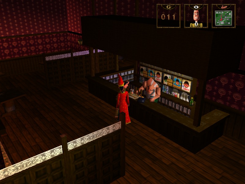 First, the graphics. They’re beyond horrible. The character models are very boxy and extremely low quality. All of the environments are totally 3D too, but they’re pasted with the same textures ad nauseam. This was typical of early 3D, but that is no excuse for Simon 3D, which was released in 2002. If it wasn’t for the higher resolution, it would look like a PlayStation game from at least five years prior – and not a particularly good one at that. It doesn’t help that the 3D renders on the covers of the Puzzle Pack released in the seven year gap between the second and third games set some measure of expectations, which were missed entirely.
