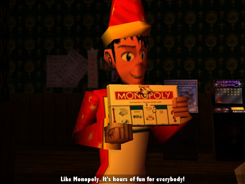 At one point, Simon comes across a warehouse filled with unsold copies of The Feeble Files, which he muses would make good coasters. Given that Hasbro Interactive was originally going to be the publisher, there are also a few random, tongue-in-cheek endorsements of their board games. In a particularly trippy, fourth-wall-breaking bit, the final puzzle requires that you eject a CD-ROM for a computer. The problem is, there’s no eject button in the game. Like Sega’s X-Men game for the Genesis, which required that you push the Reset button on the console to get past a certain point, the solution is to actually eject the drive on your own computer. It’s a vaguely clever idea, ruined by some level of technical limitations, because Windows needs to be set up properly for it to work at all.