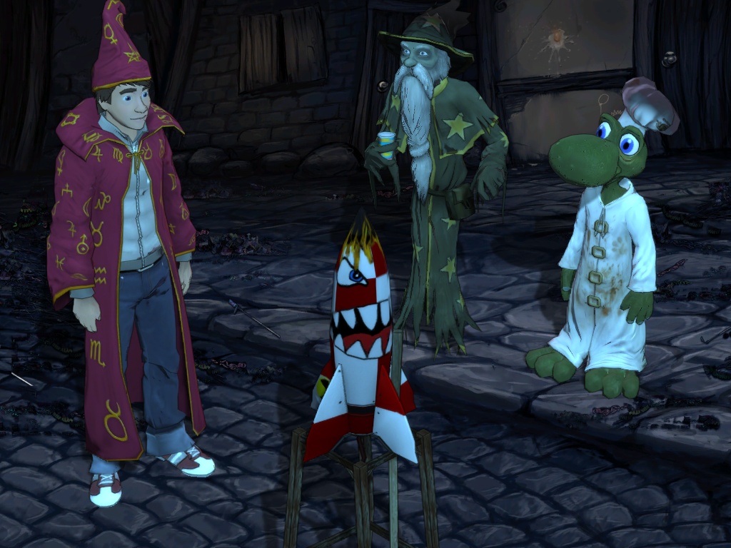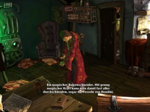 Other than the graphics, though, not much else has improved. The same horrendous voice actors from Chaos Happens return to fill their voice roles, and the dialogue is just as dire as ever. Some old characters return, but they’re mostly the ones Silver Style made for the last game. The bratty Little Red Riding Hood was cute for just a second before, but she’s practically unbearable now that she’s devolved into an obnoxious straw feminist. The cowardly Wolf returns too, and you can even play as him for a bit. The Genie from Simon the Sorcerer II (who probably no one would recognize if Simon didn’t bring it up himself) also makes a return, here having taken on the guise of a Freud-like psychoanalyst. Swampy returns too, and his voice actor should be shot, or at least tortured a little.
