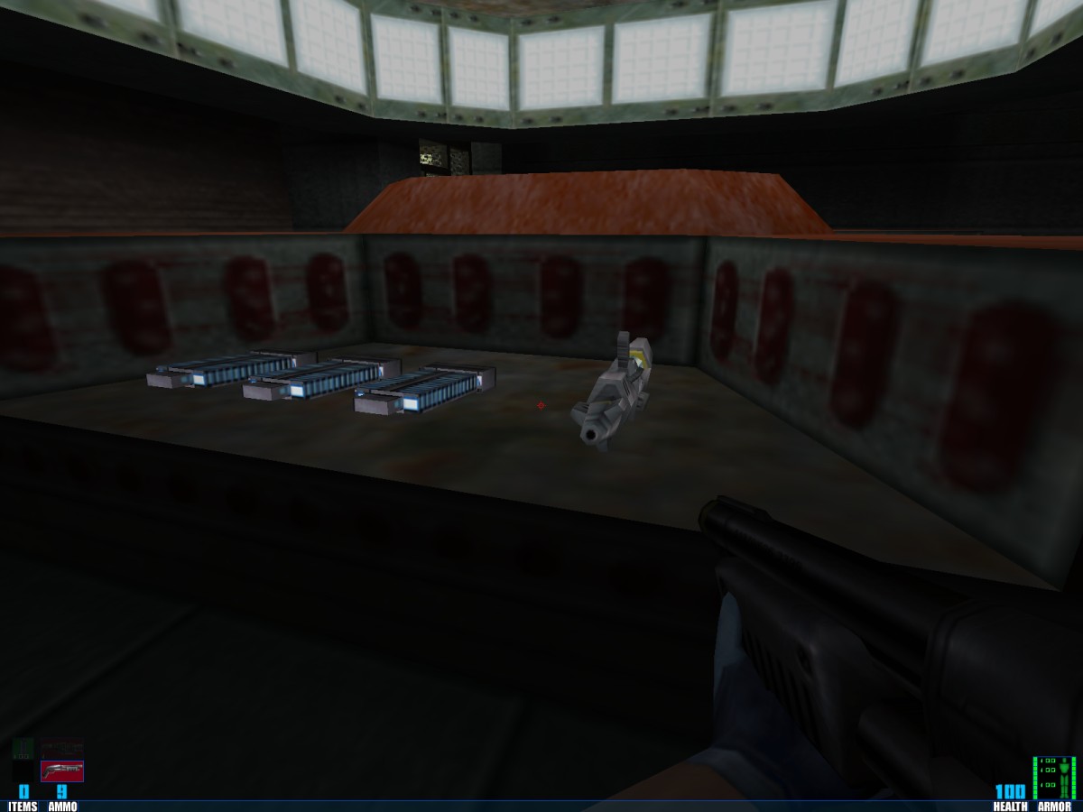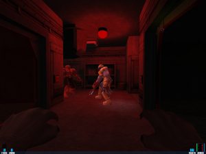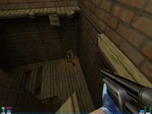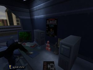 Multiplayer deathmatch features unique levels and is well designed. The standard FPS weapons are all available and the Sniper Rifle in particular adds some fun to hunting down your friends. Elexas is a playable character here and in her string bikini is not only ill equipped for a shootout but impossible to hide in the shadows of a level, making her easy prey. A particular standout is “Spry”, developed by Richard Gray, which is credited as the first “shrunk player” level in an FPS. Miniaturized players contained within a small library, hide under couches and chairs or stand above on the top of a picture frame. The change in perspective is a creative addition to the FPS deathmatch world and one that was replicated in other games.