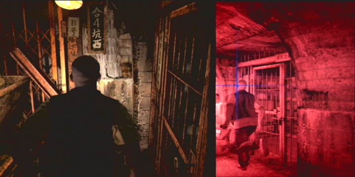 The combat and selectable difficulty from Forbidden Siren 2 make another appearance, which goes a long way towards making the game more accessible (though the difficulty is still very high, much higher than any given Silent Hill or Resident Evil). Sight-jacking now triggers a “split screen” effect, with your character’s perspective on the left hand side of the screen, and the perspective of whoever you’ve sight-jacked on the right hand side. It takes some getting used to, but it offers a tactical flexibility that comes in handy once you get used to it, especially since you can now move while sight-jacking (something you could not do in the original Siren, and only one character was capable of in Forbidden Siren 2). The game is still broken up into chapters, but the length of each chapter is significantly reduced and streamlined, which creates an interesting episodic feel. It even has “next episode” teasers when you complete a chapter. Depending on skill and experience, each chapter takes roughly ten minutes to an hour: a significant reduction in time invested when compared to the original. Playing a game as tense and demanding as Siren in small chunks is brilliant game design: it allows the player to play just enough to get his fix, and come back at his leisure. It makes it much easier for anyone to eventually see it through to the end.
