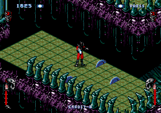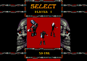 The story, as narrated in the “komik” inside the manual, begins in the not too distant year of 2062, where the aforementioned Mr. Kadaver, former mortician and leader of DEAD Inc. (Deadly Enforcement Aggressive Destruction), takes control of a cryogenics plant in MonstroCity (former Cryo City) to convert it into a factory that produces the so-called Psykogenix mutants to overrun the land. The only ones who can stop him are a multinational mercenary group called Skeleton Krew, whose members are fittingly nicknamed after skeleton parts: Spine, Rib and Joint. They are bio-mechanical soldiers whose upper body is disjointed from the rest, letting them shoot at almost 36 degrees while standing firmly in place. You can choose one or two of them in a selection screen that looks inspired by Alien Storm and/or Golden Axe, judging by the skulls.