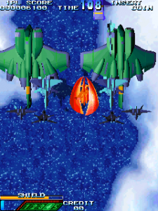The sound effects are too loud and garish, often drowning out the music. In the Japanese version, the fighter pilots are fully voiced and blather quite a bit. In the versions outside of Japan, the pilots don’t say anything, and only the commander speakers.