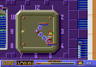 Socket also features a time trial mode where you can play the High Speed stages without enemies and try to reach the best time. The characters appear briefly in the second and fifth stage of Battle Mania: Daiginjou (released in between Socket’s American and Japanese releases), with Time Dominator appearing in one of their later forms.
