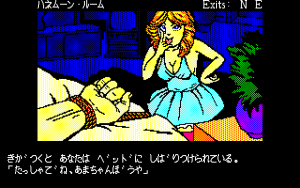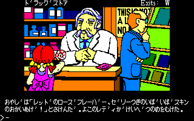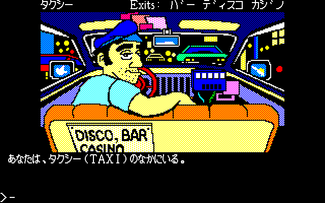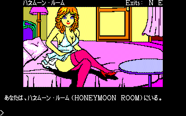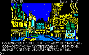 In 1987, a company called Starcraft licensed a number of Sierra games and released them on Japanese computers, often with improved visuals. In Softporn Adventure’s case, they changed the name to Las Vegas and added completely new graphics. It also runs on the same basic framework as Masquerade, another American text adventure from a different company they had translated for the Japanese market.