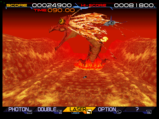 Solar Assault is great for the novelty factor. It’s really cool to see Gradius mainstays like the Big Core ship and the flaming dragons modeled in 3D. The Moai stage boss is particularly freaky, as it’s dressed as a pharaoh and has bulging white eyes. It’s also especially cool if you manage to find an arcade cabinet for the fully immersive experience. Outside of that context though, it’s definitely style over substance. This is undoubtedly one of the main reasons it never got ported – it just wouldn’t be as flashy on a home system, plus it’s quite short. The game is currently emulated in MAME, though it’s still glitchy.