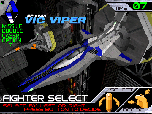 There are three ships – the trusty Vic Viper and Lord British, along with a new one, the Alpinia. Each of them has its own set of weapon upgrades. When you equip the laser, you can also fire charge shots by holding down the button.