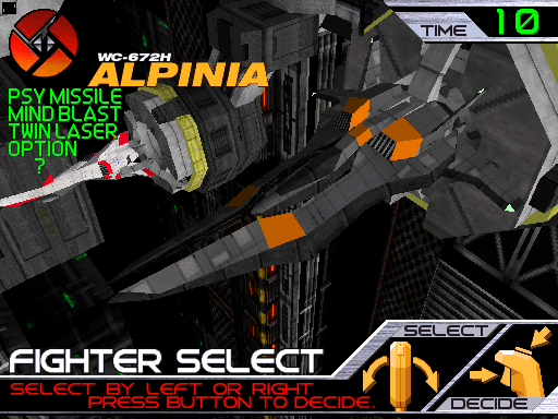 It’s a somewhat difficult game to play. The analog control is imprecise, which is pretty rough in a game where you can die in a single hit. It’s also extremely difficult to hit anything due to the lack of crosshairs. This is somewhat negated by the Psycom missiles equipped on the Alpinia, which automatically home in on enemy targets. Otherwise, missiles are hard to use.