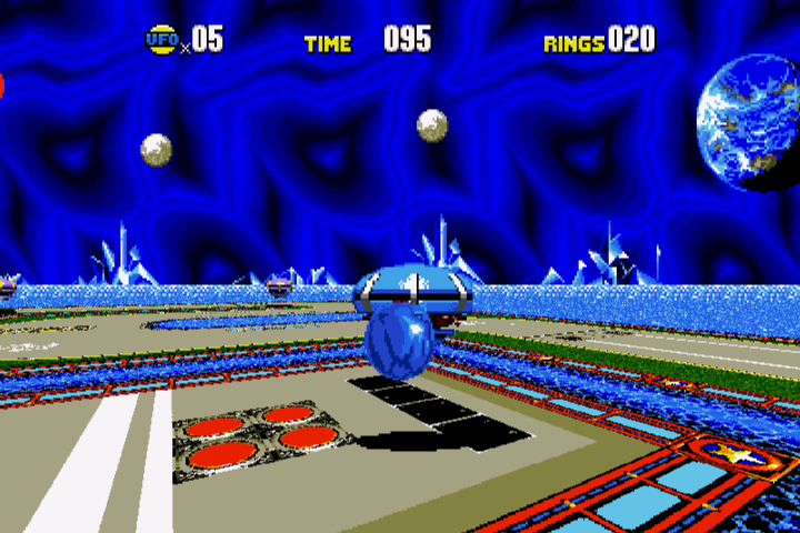 As with other Sonic games, there are two endings, but there’s also two different ways to reach them. You can create Good Futures for all of the levels, or win all of the Bonus Stages to collect the Time Stones (this game’s version of the Chaos Emeralds), which will automatically turn all of the levels to Good Futures anyway. These are presented as over-the-shoulder racing stages, using similar scaling and rotation effects as seen in SNES games like F-Zero and Super Mario Kart. The goal is to run around an enclosed arena and destroy all of the floating UFOs within a limited amount of time. These look really cool, but, as usual, it’s also ridiculously hard. Sonic runs automatically, and while you can slow down, there’s no way to stop completely. The UFOs often float around so erratically that, coupled with the issues of depth perception, it’s tough to actually hit them. Plus, many areas are filled with water, which for some reason, drains the timer. Though hunting down Robotnik’s machines in the past might require more work, It’s probably the easier method to see the good ending.