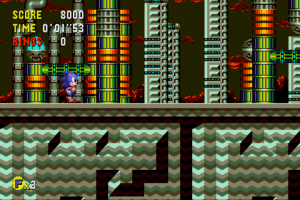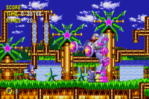 Technically you can play Sonic CD just like all of the other games: just run through to the end, beat the boss, and then continue. In this instance, Sonic CD is fun, but a little shallow. The core game is fairly easy, as are the Robotnik fights. In many of the other games, you need to hit him eight times before he goes down – here, he often takes less, with the first boss easily disposed of after three attacks. In one, you don’t even need to attack him at all, as the friction from running on a conveyor belt simply destroy Robotnik’s machine for him. The final battle is almost comically anti-climactic compared to the other games.