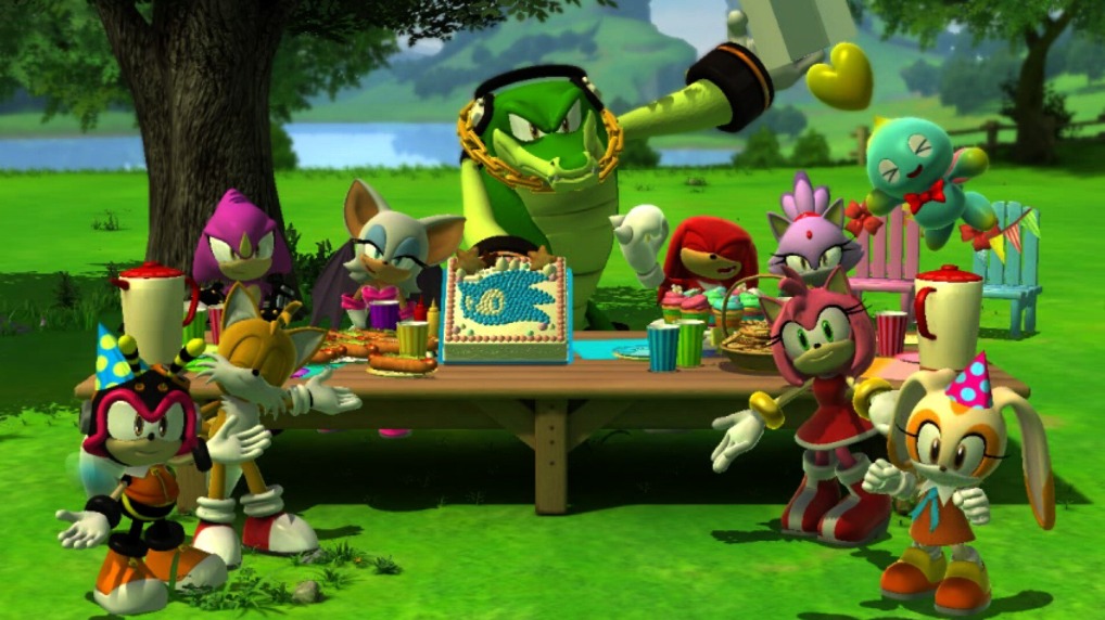 Released in 2011, Sonic Generations was conceptualized as a celebration of the franchise’s 20th anniversary. The game begins with Sonic’s closest friends (and Espio) all coming together to throw a surprise birthday party for their heroic hedgehog pal. The festivities are interrupted when a titanic behemoth exuding dark energy arrives via a dimensional portal and abducts Sonic’s friends (and Espio) with various other portals. At the same time, Classic Sonic – just as he appeared in 1991; smaller, mute, and having not yet learned how to boost-dash – has his own encounter with this fearsome foe. When Sonic (well, both Sonics, although they haven’t met yet,) wakes up, the world has been drained of color, and the only way to restore life and rescue his friends is for Sonic and Sonic to travel through nine levels, with one ‘classic’ and one ‘modern’ iteration each, all based on his previous adventures. Or, from Classic Sonic’s perspective, future adventures.