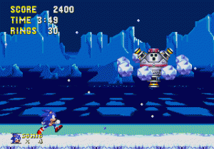 There are six Zones in total: Angel Island, which seems like the same tropical-type zone, until Robotnik’s machines set it entirely ablaze; Hydrocity, another take on the flooded ruins theme, but this time with a lot more speed; Marble Garden, another area made of ancient ruins; Carnival Night, similar to Casino Night but with an amusement park theme; Ice Cap, a snow-themed area; and finally Launch Base, where you square off against Robotnik.