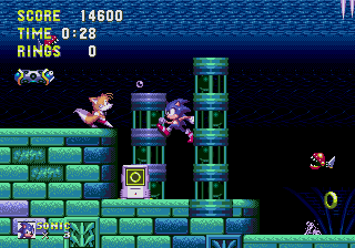 The standard shield has been replaced with three different elemental ones: the flame shield protects you from fire and lets you dive forward with a powerful lunging fireball attack; the bubble shield lets you breath underwater and protects you from certain weak projectiles, plus you can use a powerful bouncing attack; and the lightning shield attracts rings and can let you double jump. Even without a shield, Sonic has an extra attack that surrounds him with a small blade when jumping. It’s not much, but lets you hit enemies that might otherwise be slightly out of your range. You can now play as Tails alone, and he has the ability to play, allowing him to explore areas that Sonic can’t. However, he also can’t turn into a super form, nor can he use the shields’ special attacks. The game also features a battery backup save function, which was sorely needed in the old games.