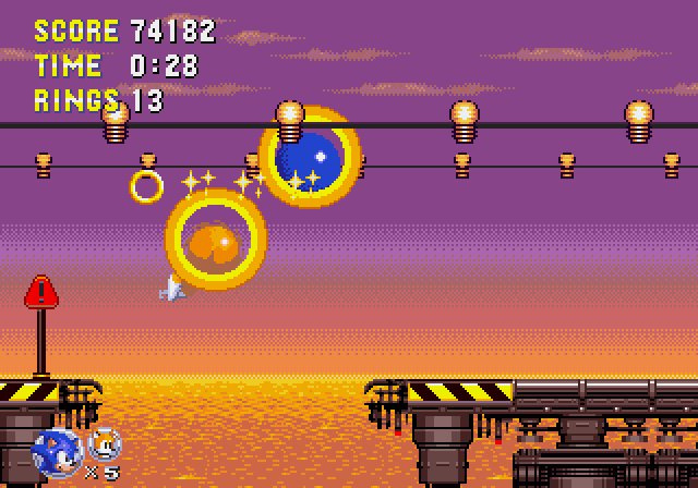 Stage gimmicks like the carts in Sunset Park or the water bubbles in Tidal Plant (returning from Sonic 2‘s 8-bit counterpart) add variety without being obnoxious interruptions. Shortcuts to previous areas and secret passages leading to power-ups or item boxes are hidden throughout the levels. Stage designs gradually increase in challenge and trick the player, but in a way that feels fair and never cheap. In short, it’s the closest that Aspect have ever come to emulating the structure and progression of the Mega Drive games, and it’s easy to see why they kept trying to do so when the end result is this good.