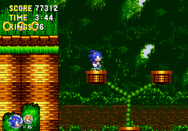 How you access the Special Stages has also been changed. Hidden within each level is an Emerald Monitor. If you hit the monitor while holding over 50 rings, a sparkling trail appears above you, and you jump into the trail to get to the Special Stages. This change encourages a different kind of exploration from Sonic Chaos; instead of just collecting a certain amount of rings, you also have to explore the levels more intently in order to find the Special Stages.